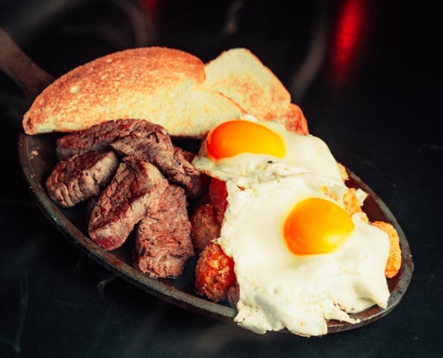 Loaded with the best from the BBQ including smoky brisket, pulled pork, jalapeño brisket sausage, cheddar cheese and hot BBQ sauce. You’ll be fanning yourself with a napkin like it’s the middle of a Texas summer.