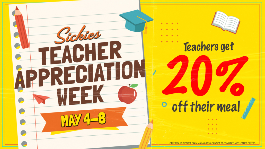 Thank you, Teachers!  Enjoy 20% off at Sickies Garage.